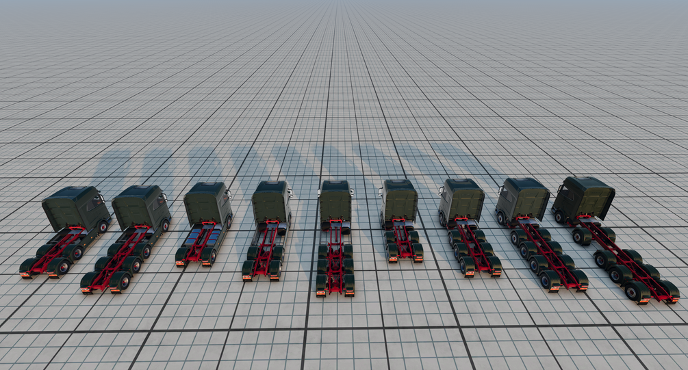 - Almost an infinite amount of axle and frame variants with both steer and regular boggie axles on every axle.